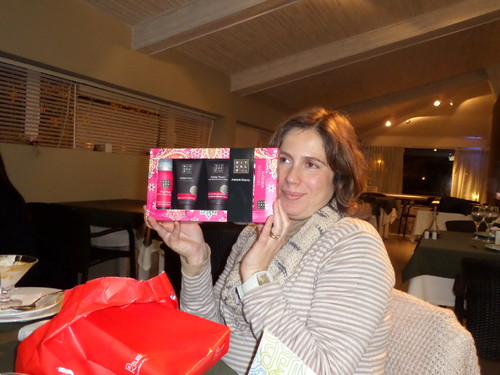 Livros da minha Tana, um vestido vermelho e um casaco Sahoco (super chiques) da mana Dora, uma carteira Tous (maravilhosa) da mana Marisa, uns óculos de sol (muito fashion)e uma pulseira da Swarosky, presentes do marido e quando eu já não esperava mais prendas, recebi umas maravilhosas botas Hunter, lindas, lindas, lindas (presente do filhote)!!!!